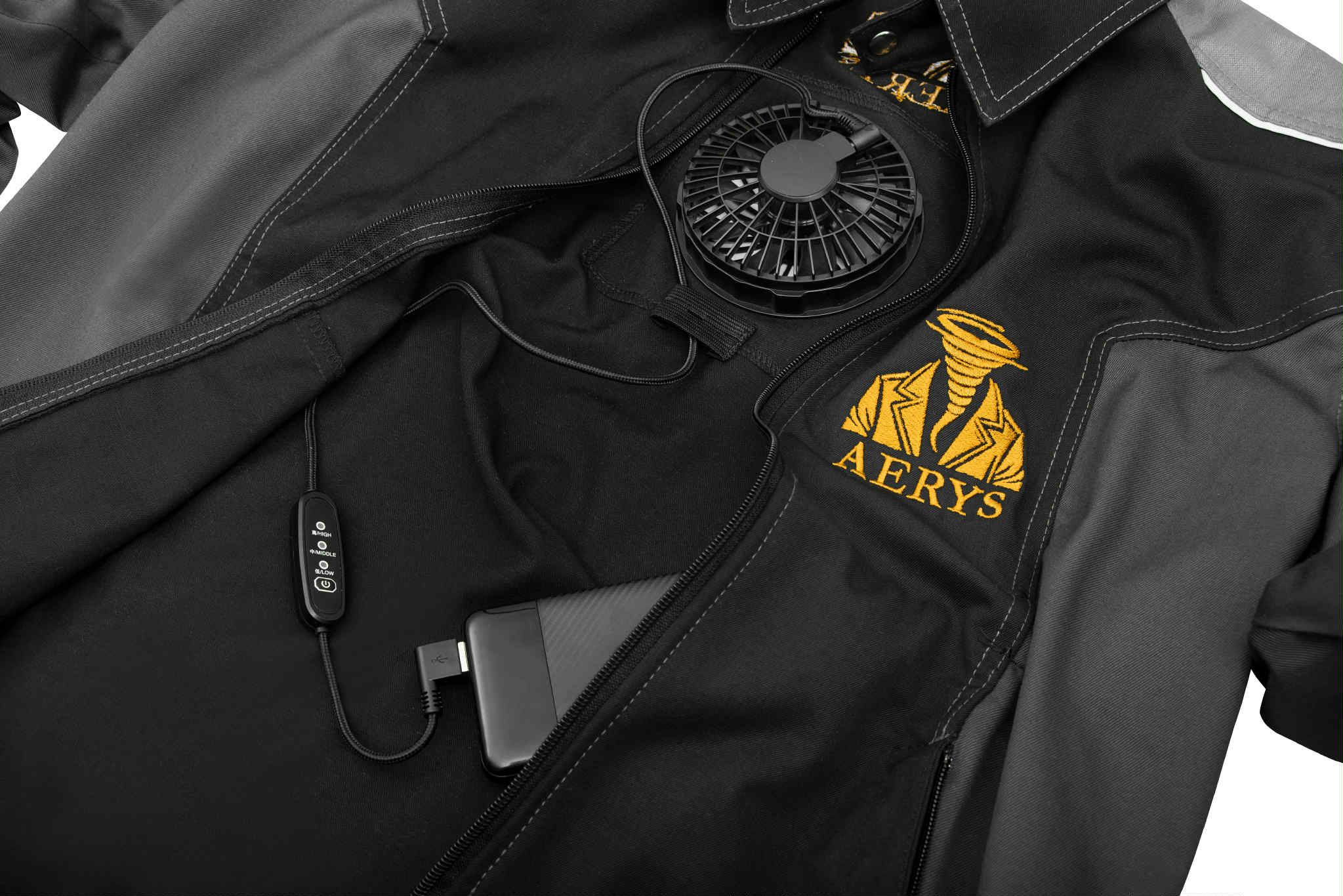 A kabát hátába egy diszkrét, mégis erőteljes ventilátor van beépítve. Ez a csendes motor egyenletesen keringeti a levegőt a kabát belsejében, létrehozva egy személyes mikroklímát, amely hűvösen tartja Önt.